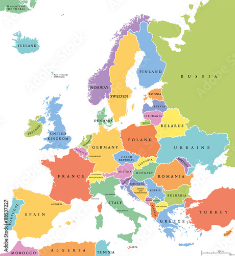 Europe Single States Political Map All Countries In Different Colors With National Borders And Country Names English Labeling And Scaling Illustration On White Background Buy This Stock Vector And Explore Similar